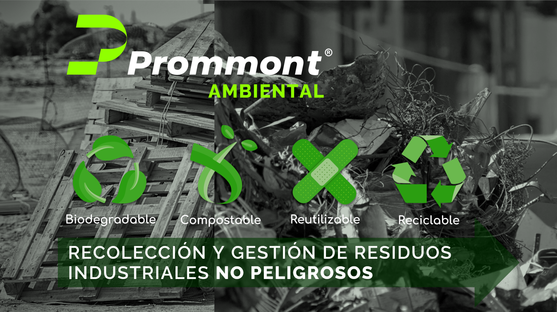 En PROMMONT AMBIENTAL ofrecemos el servicio de recolección y gestión de residuos industriales no peligrosos biodegradables o compostables (madera, pétreos, metales ferrosos/no ferrosos). Contamos con procesos de clasificación y recuperación funcional (total o parcial) para la reutilización o reciclado de estos materiales con el fin prolongar su vida útil y la generación de materias primas secundarias, evitando así, sumar desechos que afectan la naturaleza.